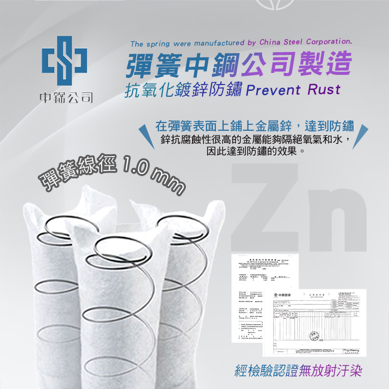 填充物/聚胺酯(記憶棉)+中鋼獨立彈簧