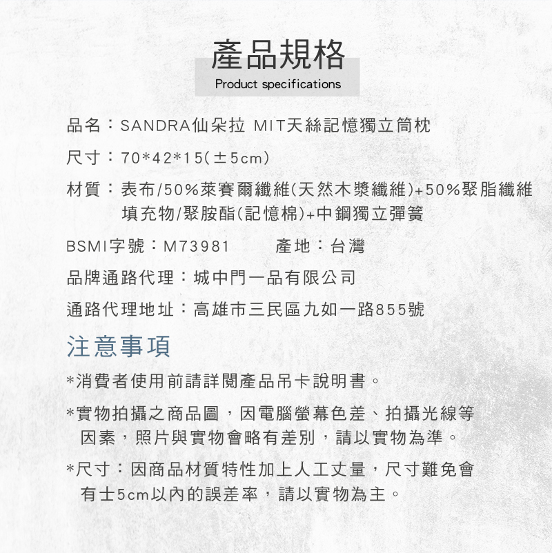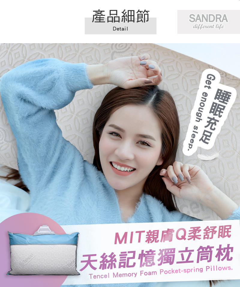 【仙朵拉 Sandra】MIT台灣製 天絲記憶獨立筒枕頭