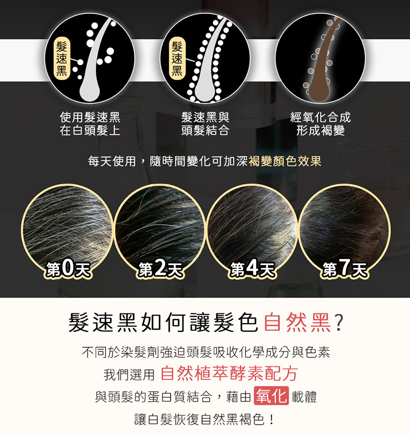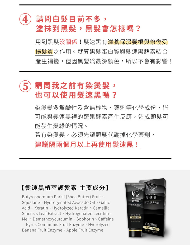 ·髮速黑的顏色深淺不太一樣,開封時間越久顏色越深皆屬正常現象,不影響效用,敬請安心使用。