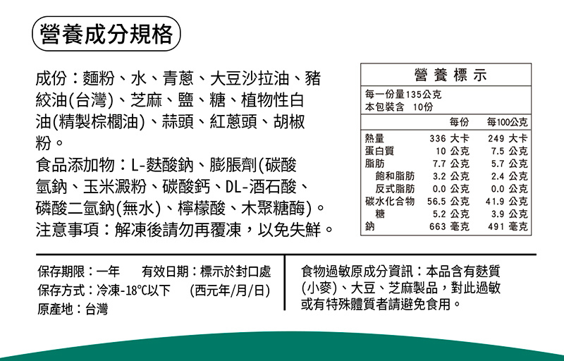 注意事項:本產品含有麩質(小麥)、大豆、芝麻製品,對此過敏或有特殊體質者請避免食用