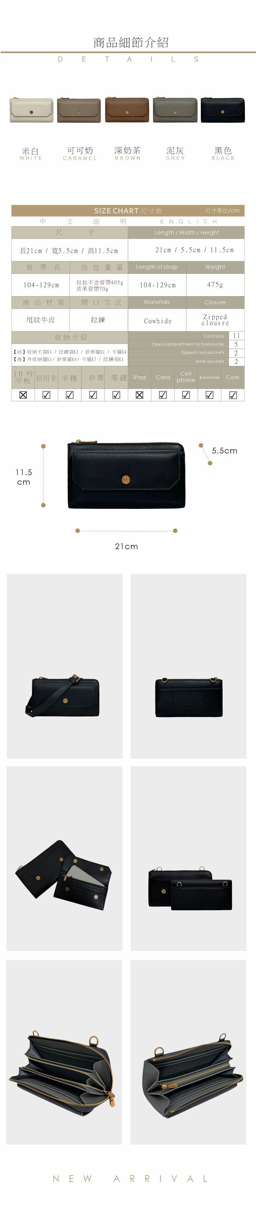 可拆卸皮夾設計讓您可以輕鬆斜背或單獨使用,錢包前部擁有1層鈔票層、4層卡片層、1層拉鍊袋及1層收納主袋,方便收納各類物品,後部則設有1層外收納層、4層鈔票層、7層卡片層和1層拉鍊袋,提供更多分類與收納空間,滿足您的日常需求