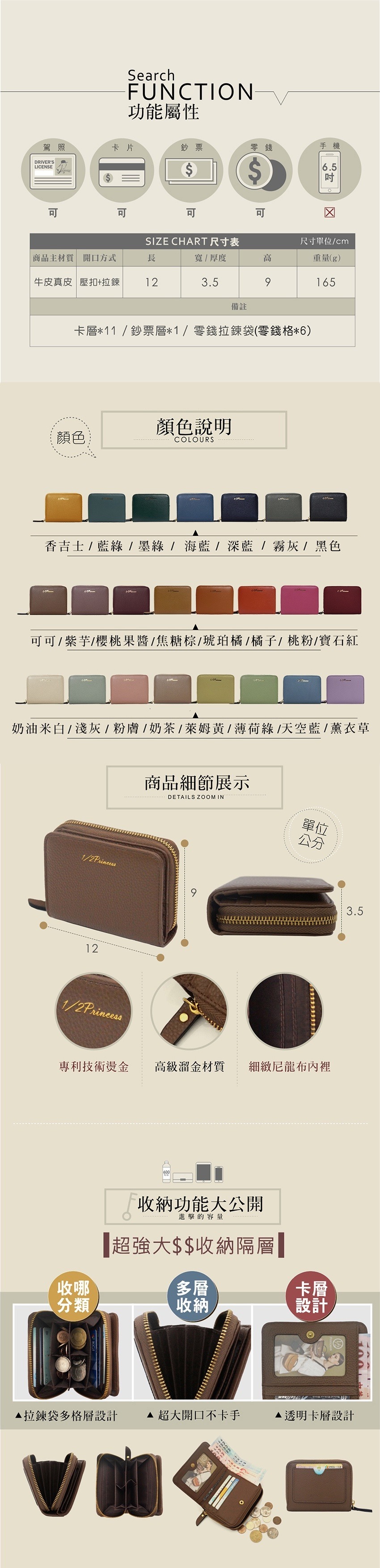 內部擁有1層鈔票層與11層卡片層,充分滿足日常收納需求