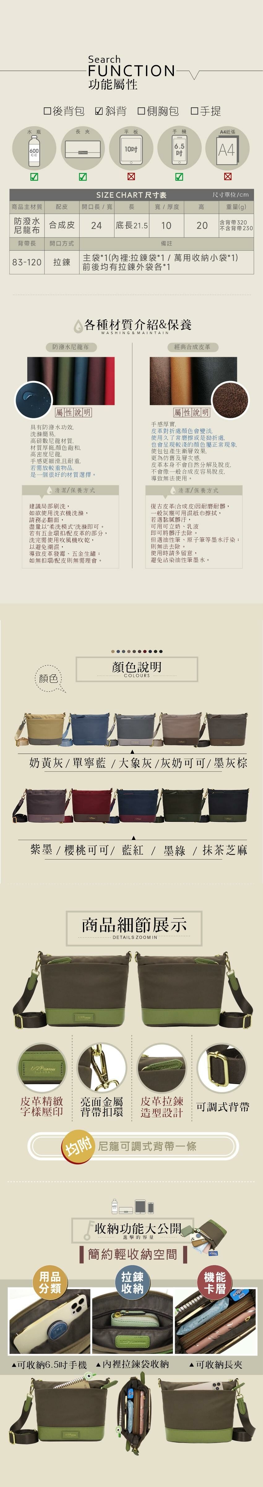 採用高磅數防潑水尼龍布與合成皮材質,堅固耐用,擁有十種顏色選擇,兼具實用與時尚感!