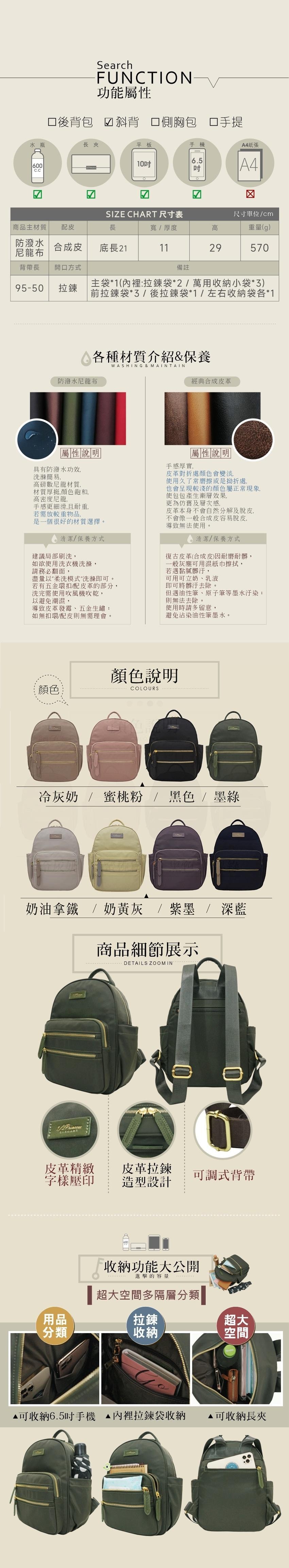 底長21cm×寬/厚度11cm×高29cm×背帶長度95-50cm