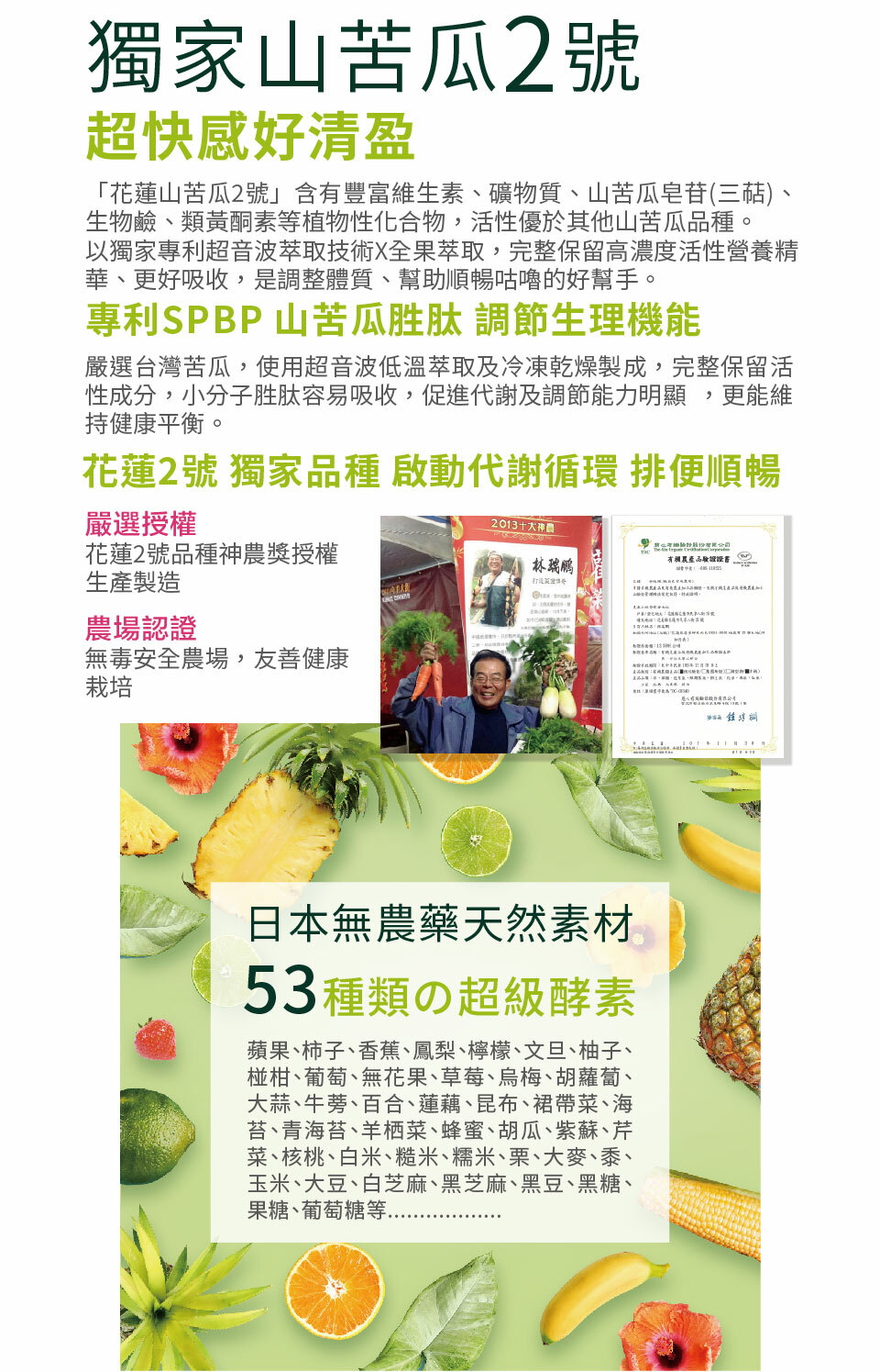 專利山苦瓜胜肽,促進代謝無負擔,高濃度山苦瓜花蓮2號萃取,提升美纖力!
