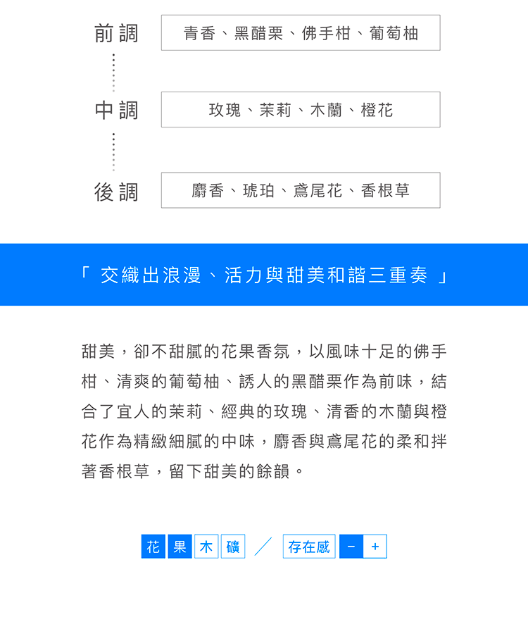 前調:甜橙、薄荷、佛手柑