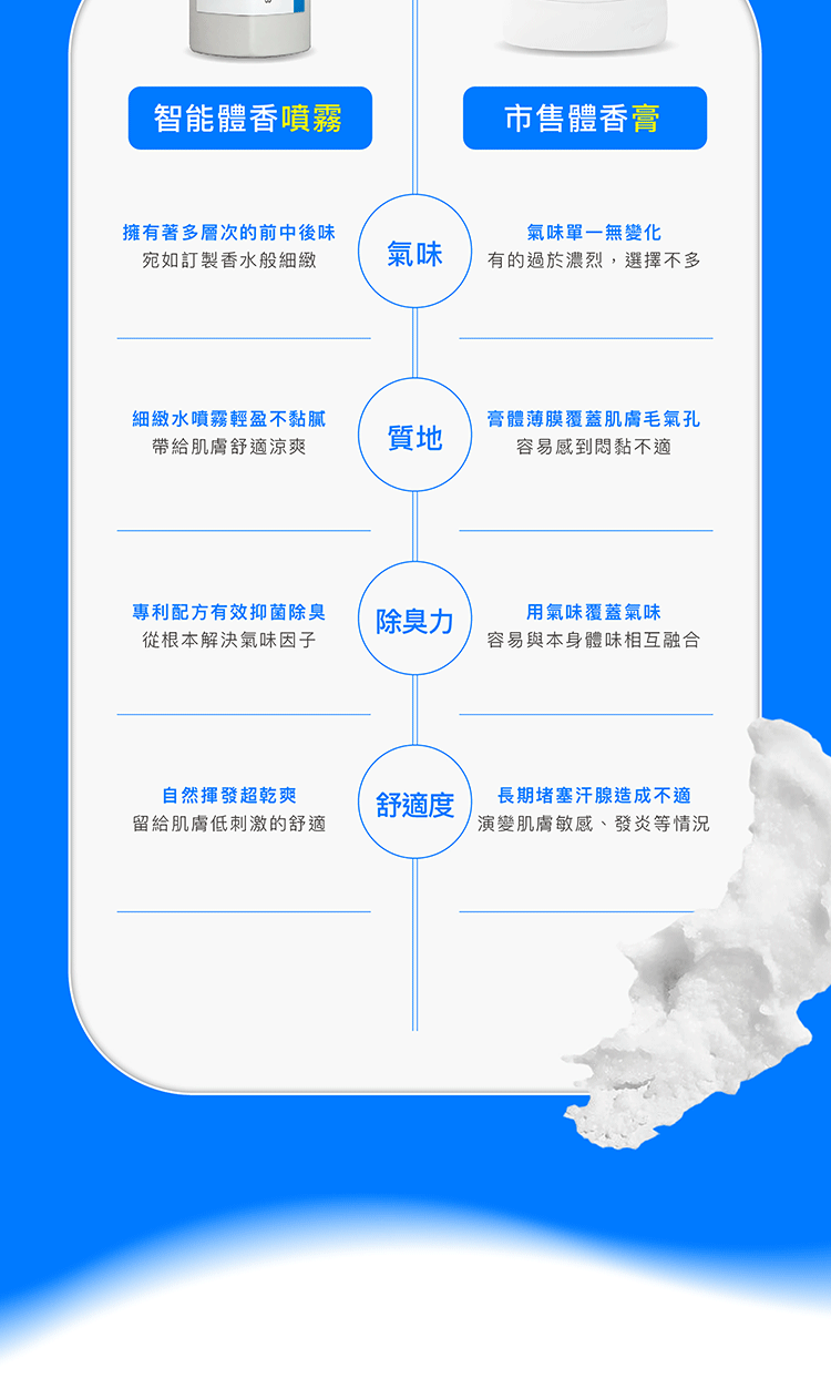 用途:抑制細菌滋生,清爽無黏性,維持肌膚舒爽自在。