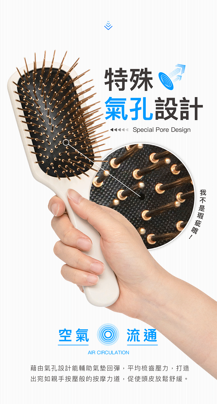 *柔軟彈力氣墊,讓在梳理的過程更加貼合頭部