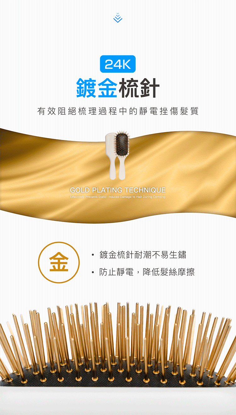 *採用24K鍍金梳針防止靜電挫傷髮質