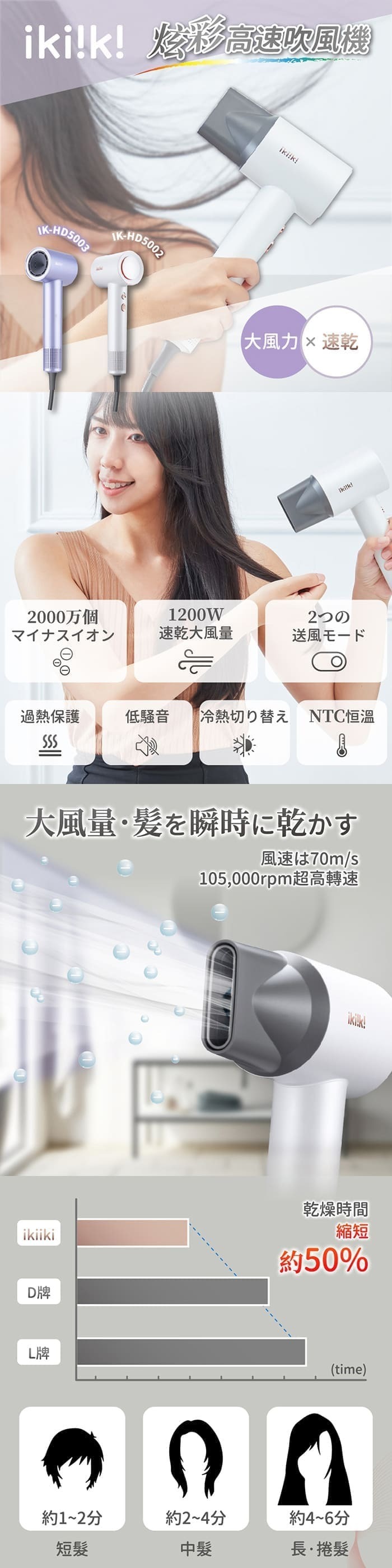 .70m/s超大風速,大幅降低吹髮時間