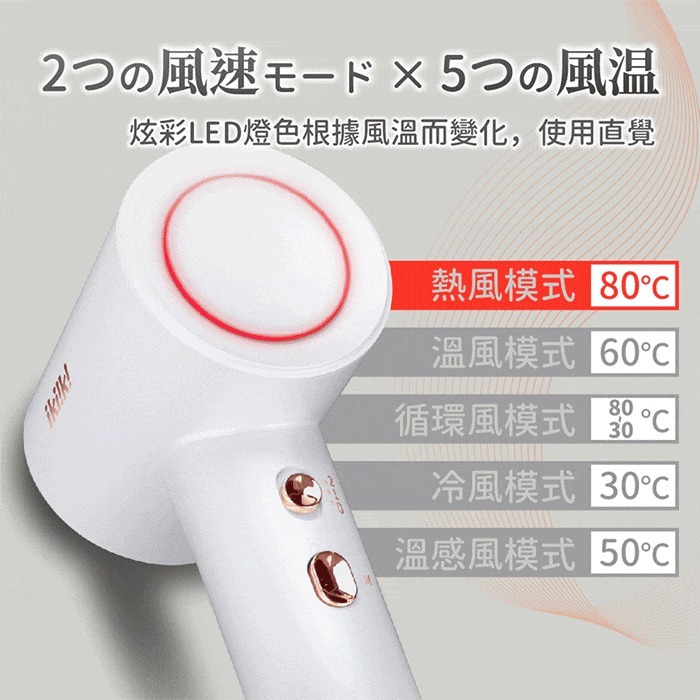 .兩檔風速選擇、五檔熱風溫度調節,滿足各種吹整需求