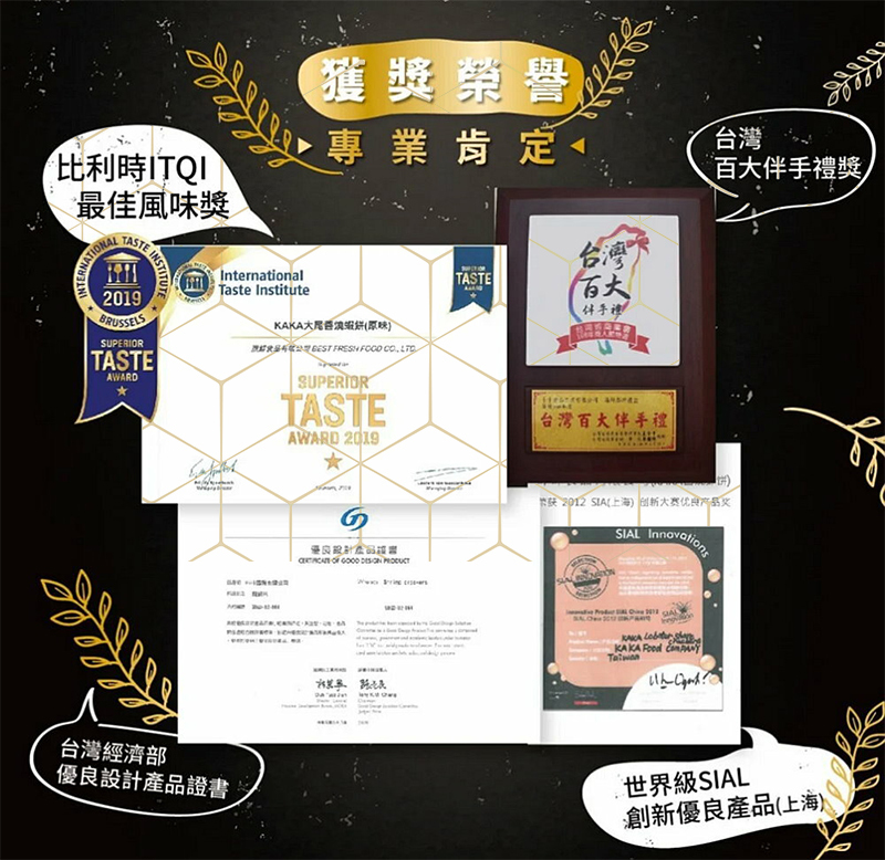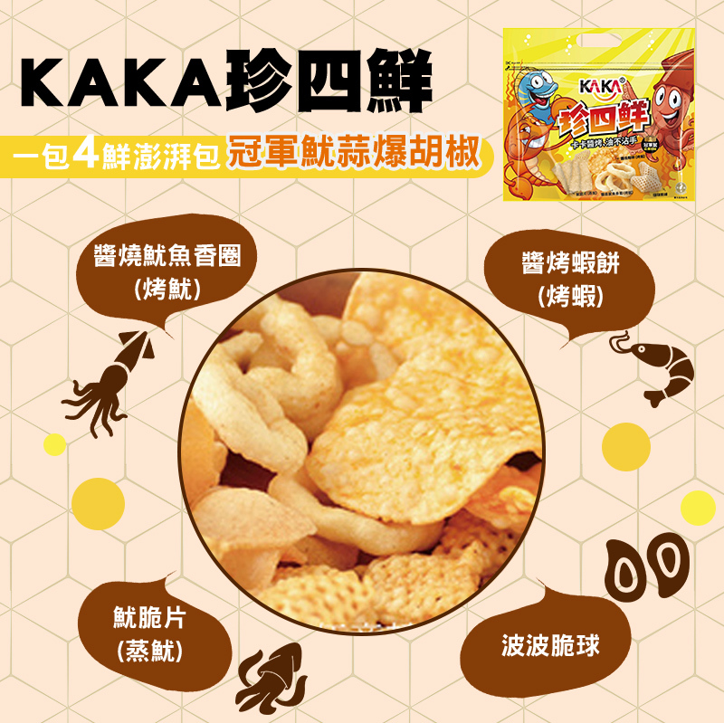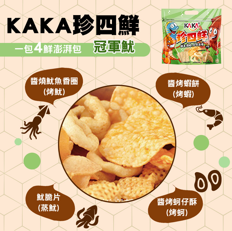 KAKA三大特色「獨門醬汁、手工醬烤、離心脫油」,讓餅乾風味更佳!KAKA獨有食品級「Deoil離心脫油」技術更讓餅乾乾燥、清爽,包裝內袋無多餘油脂殘留,讓您放心享用零食!