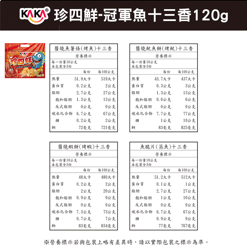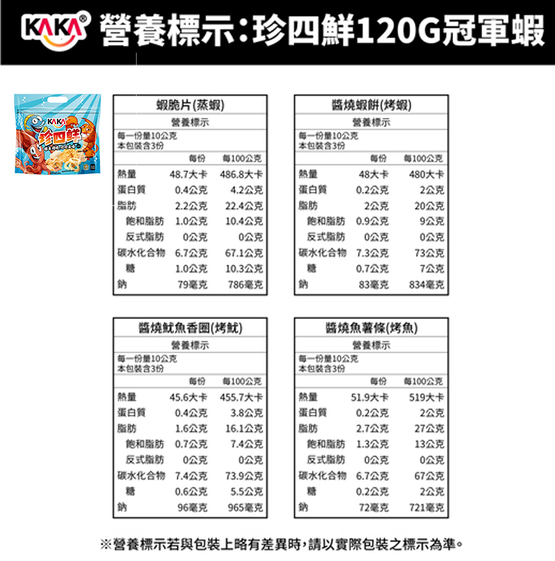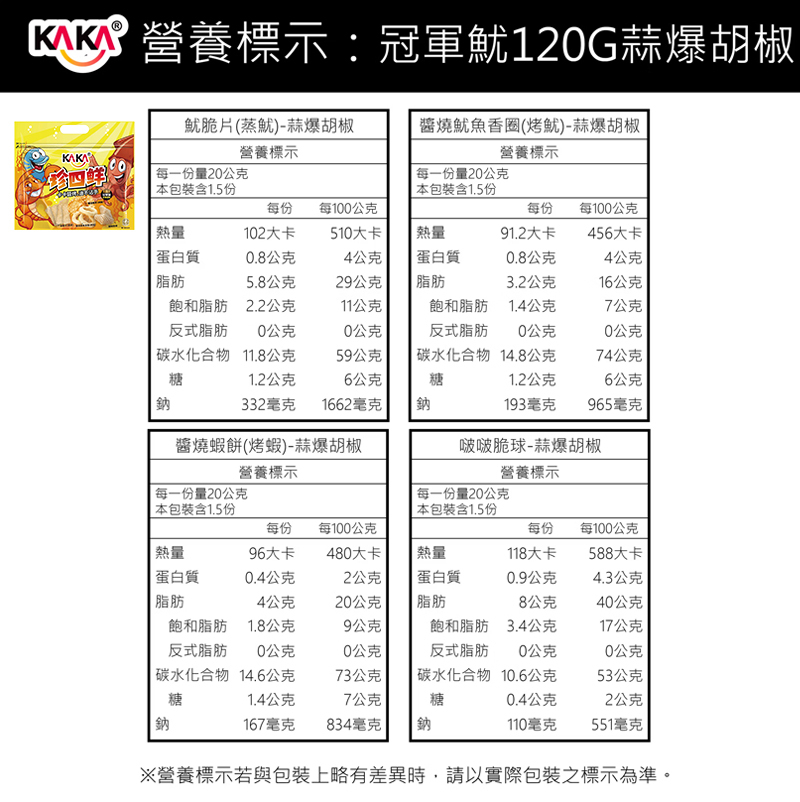 *過敏原:本產品內含牛奶、蛋、甲殼類海鮮(蝦)、魚、魷成份,對此過敏者請避免食用。