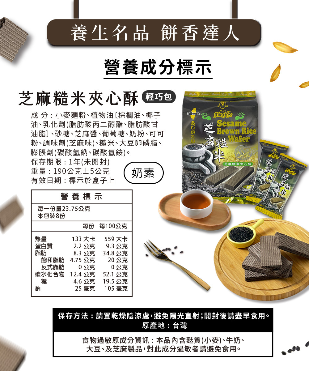 品名:【Mincher明奇】芝麻糙米夾心酥