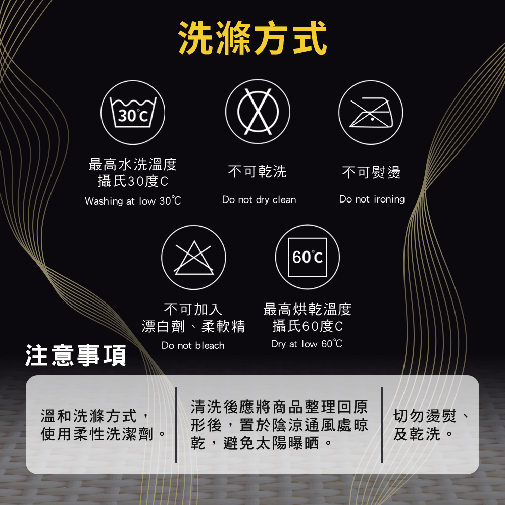 1.溫和洗滌方式,使用柔性洗潔劑。
