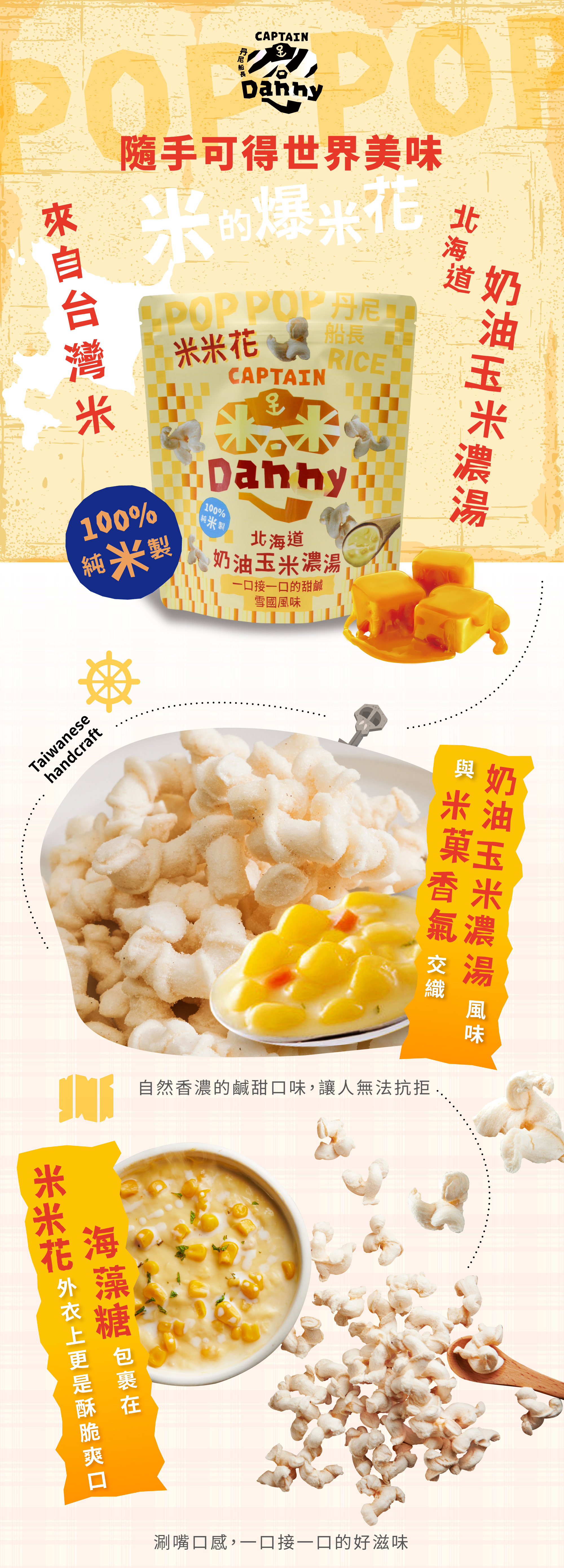 人氣熱銷top3的玉米濃湯米米花,奶味香醇、口感濃郁的