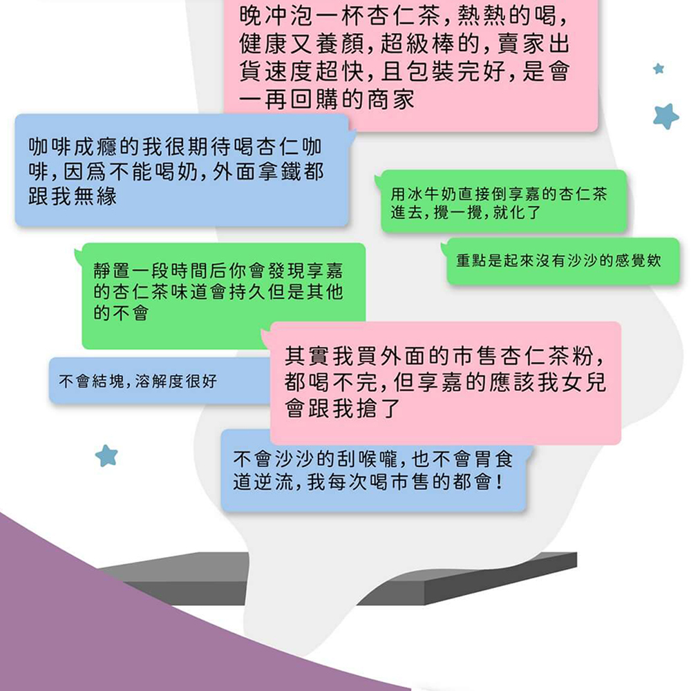 香醇杏仁粉25gx8包:杏仁豆、初胚燕麥、葵花卵磷脂、亞麻仁籽、麥芽糊精、椰子油、豌豆蛋白、關華豆膠、乳酸鈣