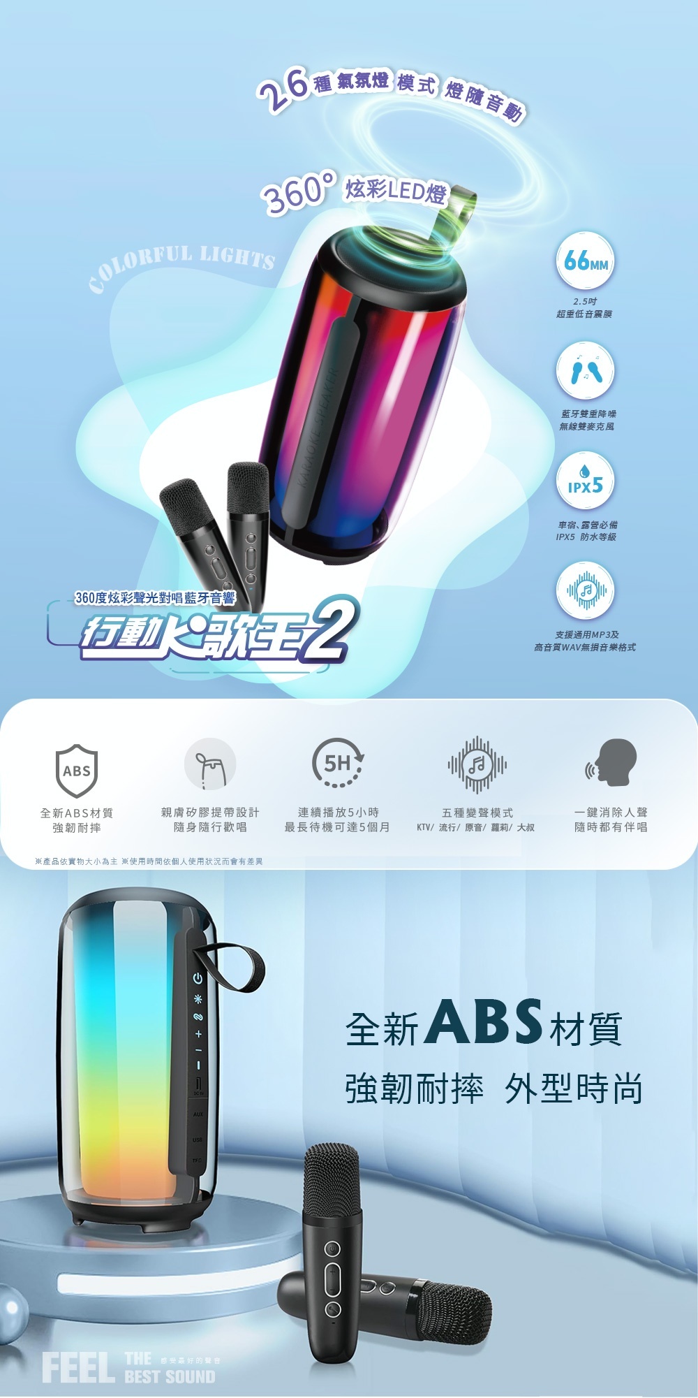 *26種模式七彩酷炫氣氛燈,燈隨音動,隨身隨行,隨時開唱