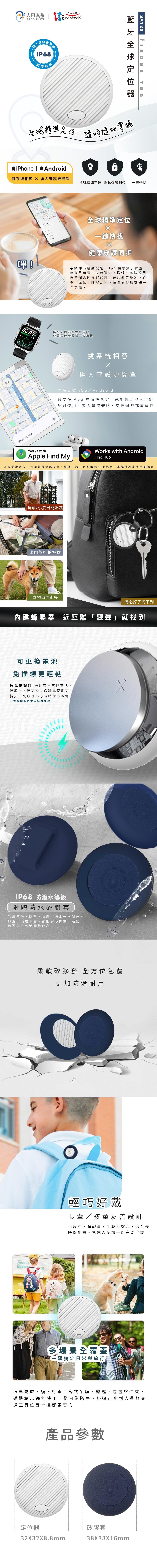 | 產品尺寸 / 重量 | 定位器 32*32*8.8mm / 7.3g,矽膠套 38*38*16mm / 9.7g | ||||