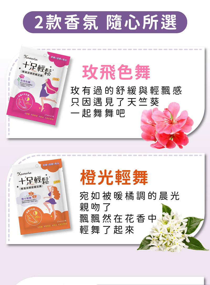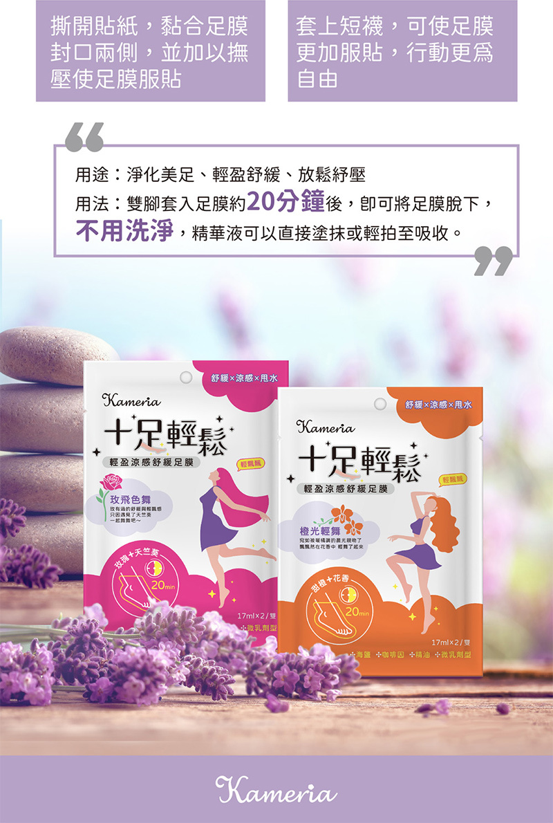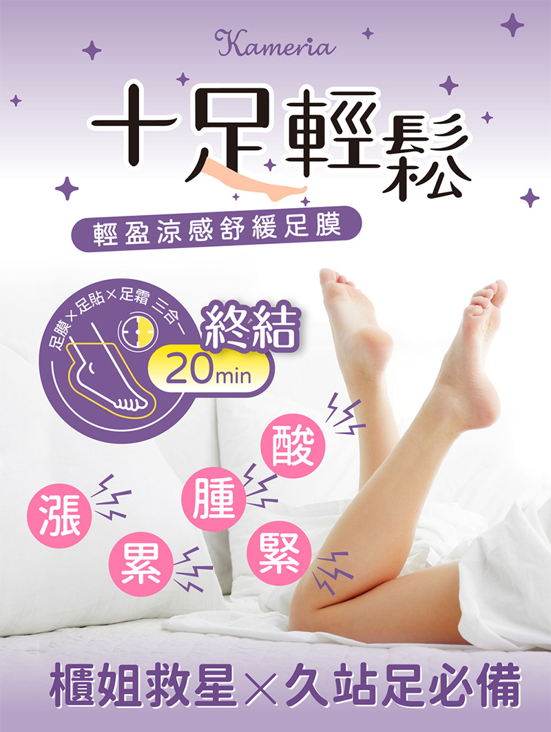 【凱蜜菈 Kameria】十足輕鬆 輕盈涼感舒緩足膜|2款任選