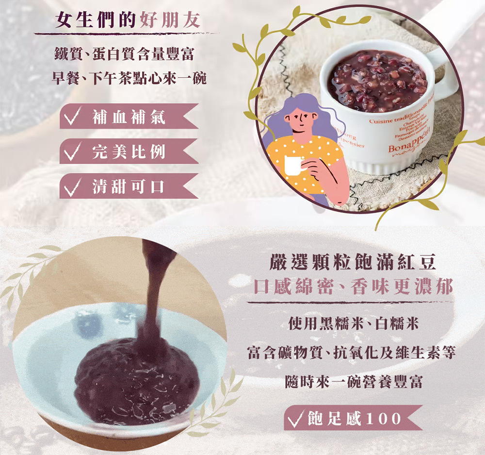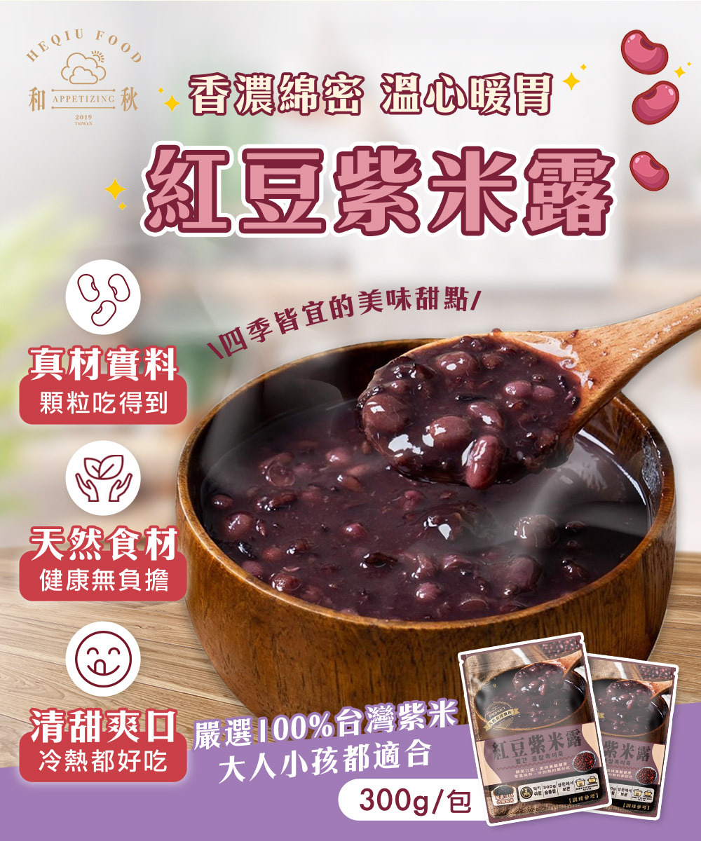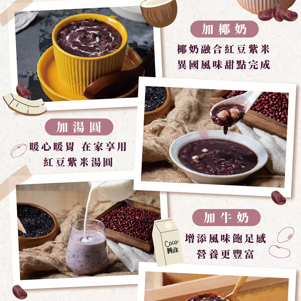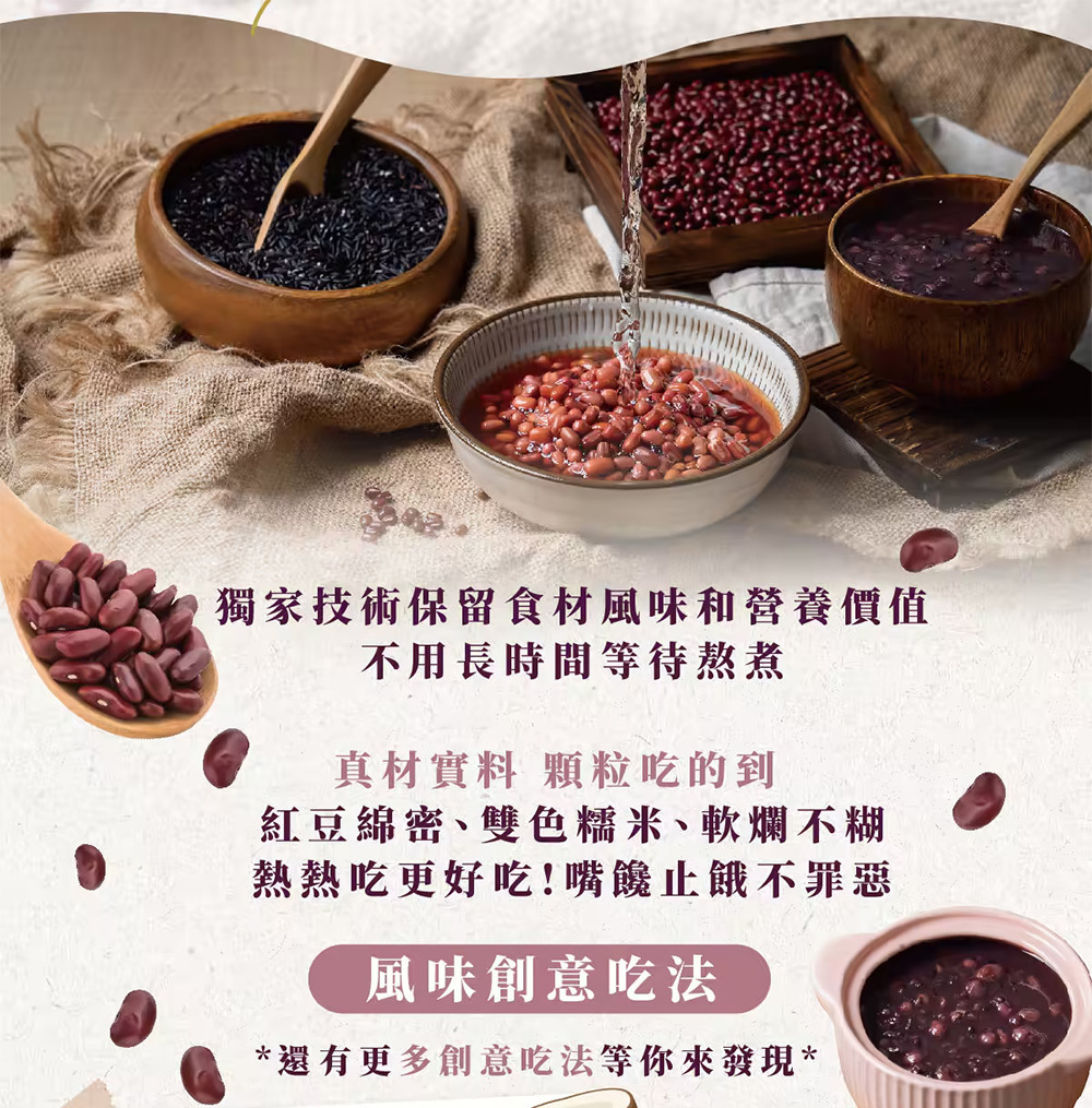 濃郁的紅豆紫米露,開袋即刻享用,就像現煮!