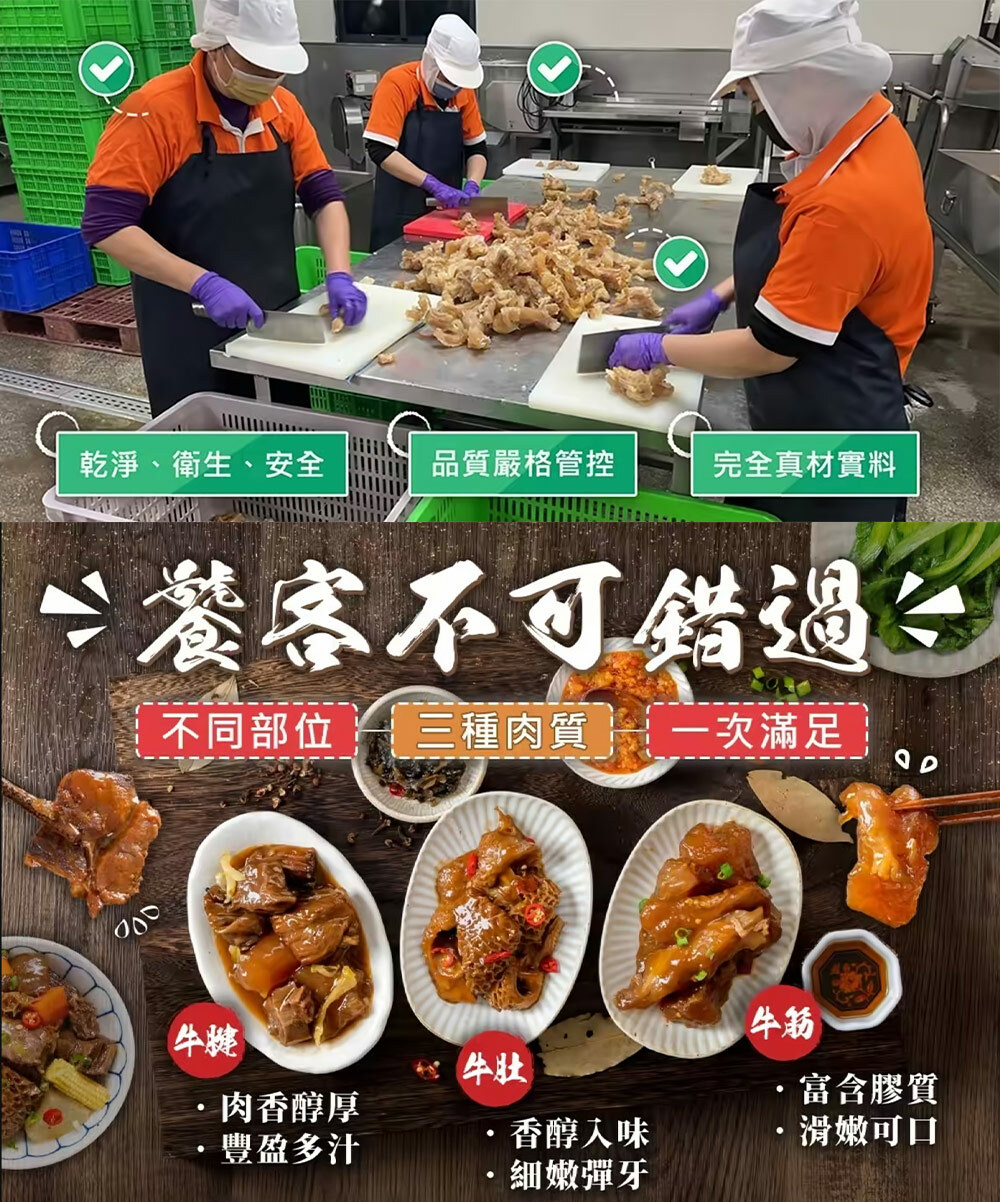 三種肉質一次滿足,多汁牛腱、入味牛肚、滑嫩牛筋