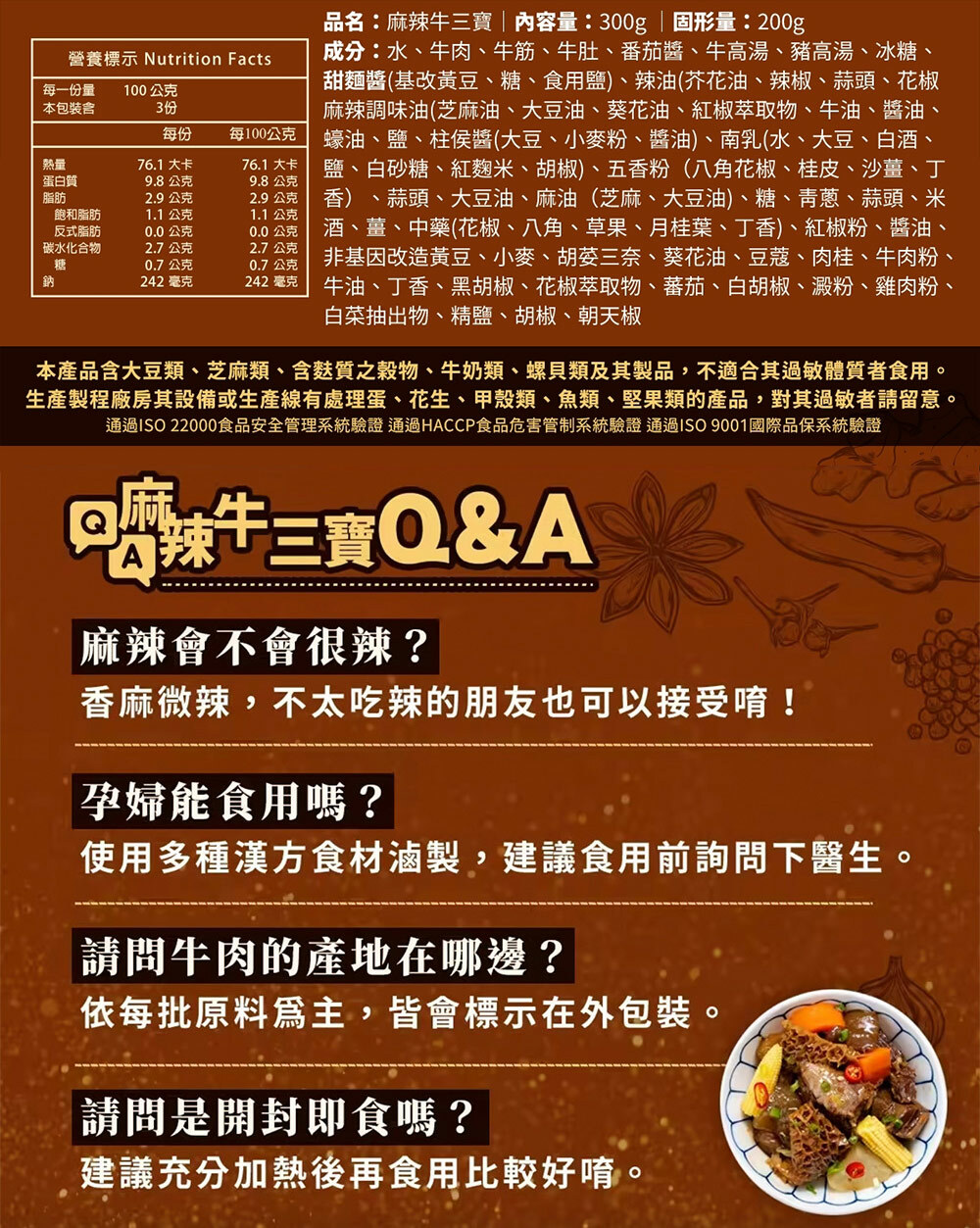 *本產品含有大豆類、芝麻類、含麩質之穀物、牛奶類、羅貝類及其製品,不適合過敏體質者食用。