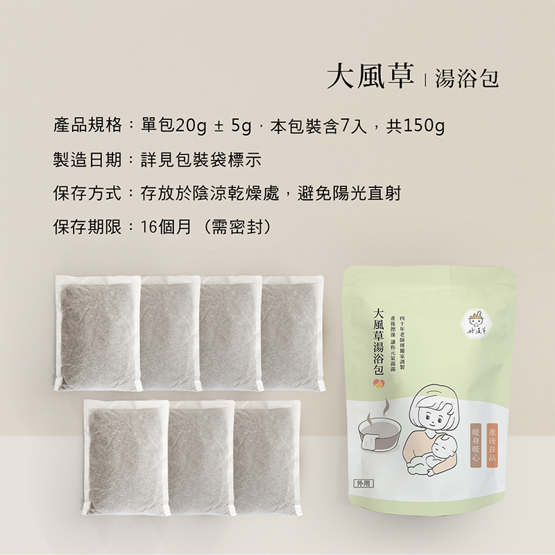此外,對於常見的問題:"產後可以洗澡嗎?" "產後如何保持身體清潔?" 我們的大風草湯浴擦澡包就是答案。
