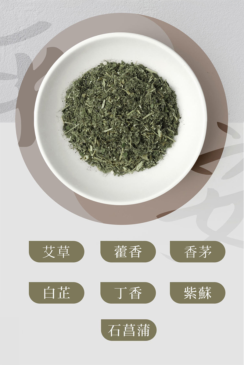 成分:艾草、藿香、薄荷、白芷、丁香、紫蘇、香茅、石菖蒲