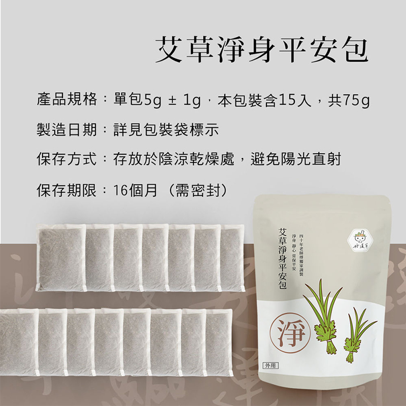 用好漢草的艾草淨身平安包,讓您的生活更加舒適和安心。小小一包,大大的功效,讓您在忙碌的生活中,也能找到一份寧靜和安全。