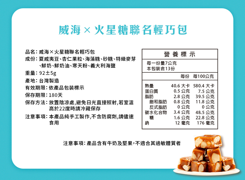 『夏威夷豆、杏仁果、寒天、海鹽、麥芽糖、海藻糖、鮮奶、鮮奶油』