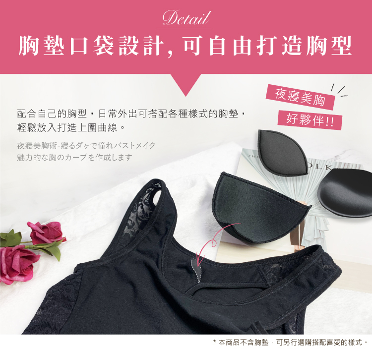 ※可放入喜歡的厚薄胸墊,使胸型更堅挺,邊睡邊保養出美胸。