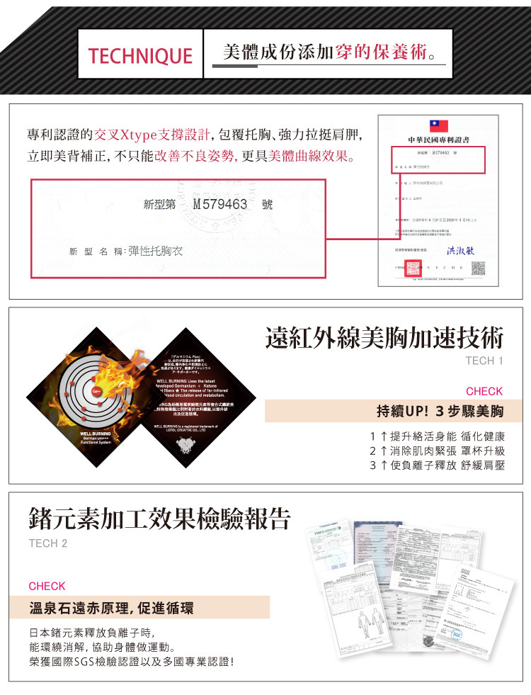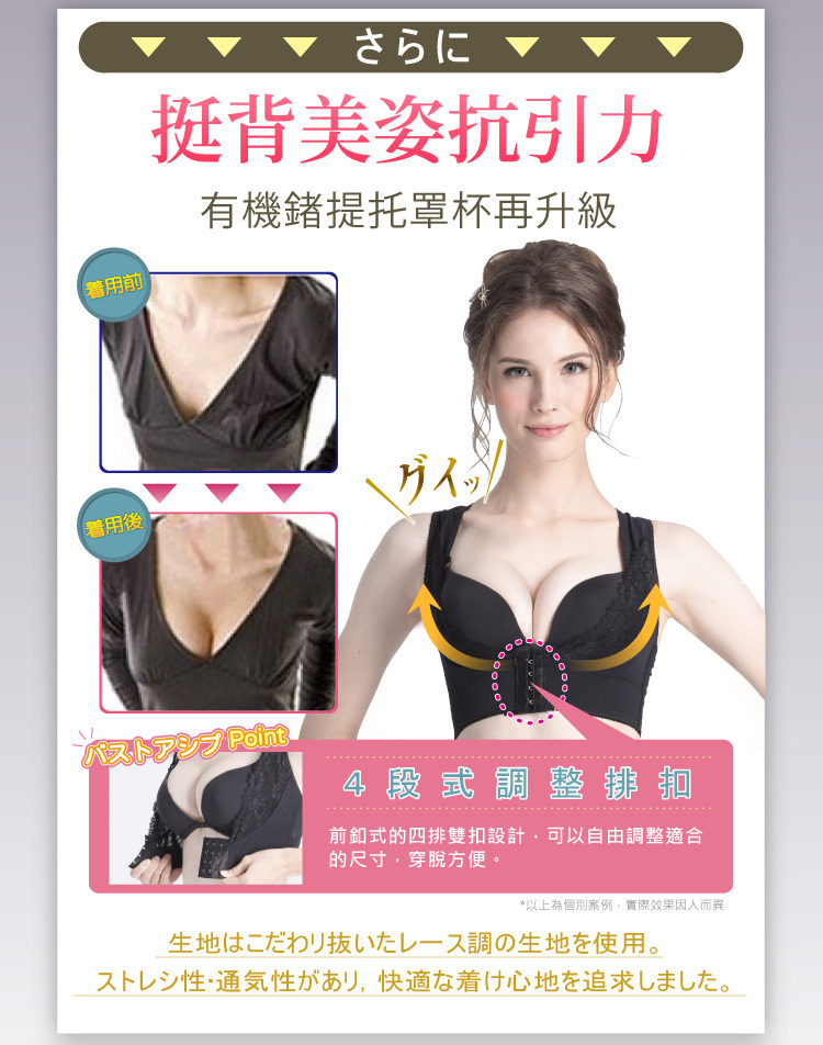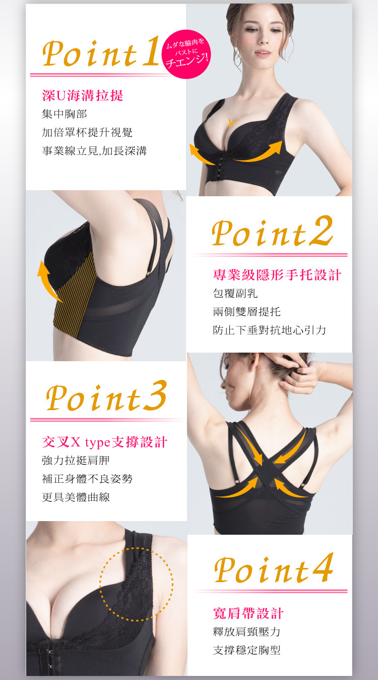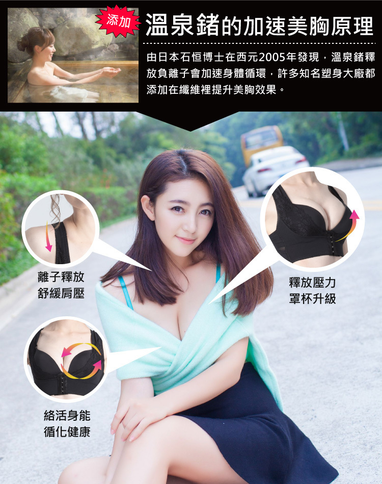 隱形手托U設計,一穿擠爆事業線,日本鍺元素添加,加速美胸健康活絡
