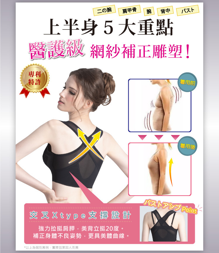 專利X型防駝美背,名模體態立見隱形小心機,通暢美胸加速器!