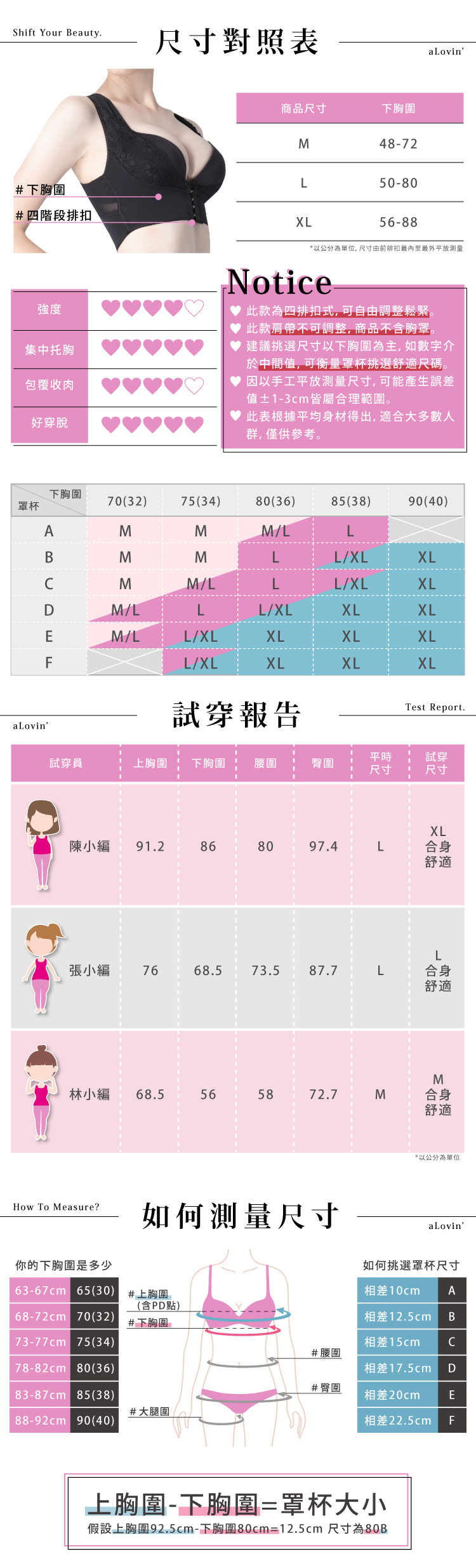 · L 下胸圍(50~80cm)、罩杯(75C-80C)