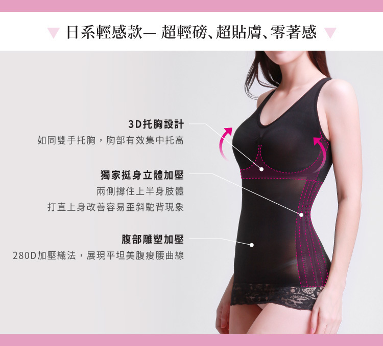 透氣挺身蕾絲收腹衣日本膠原加碼,超薄輕透收腰祕技