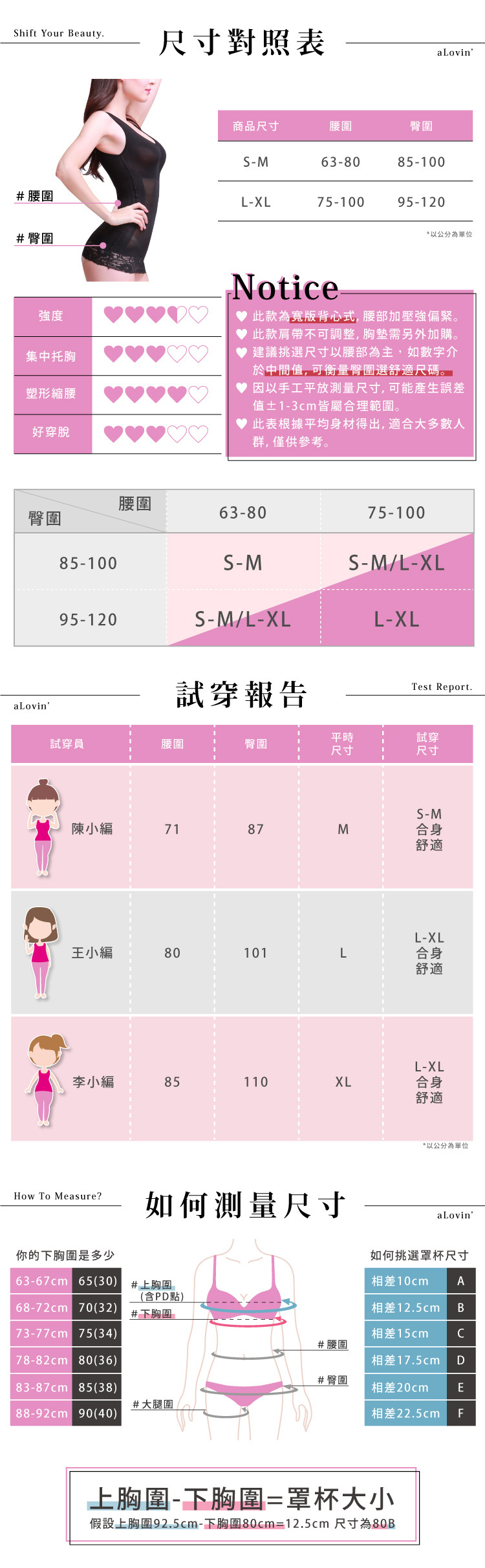 S-M 腰圍(63-80cm)、臀圍(85-100cm)