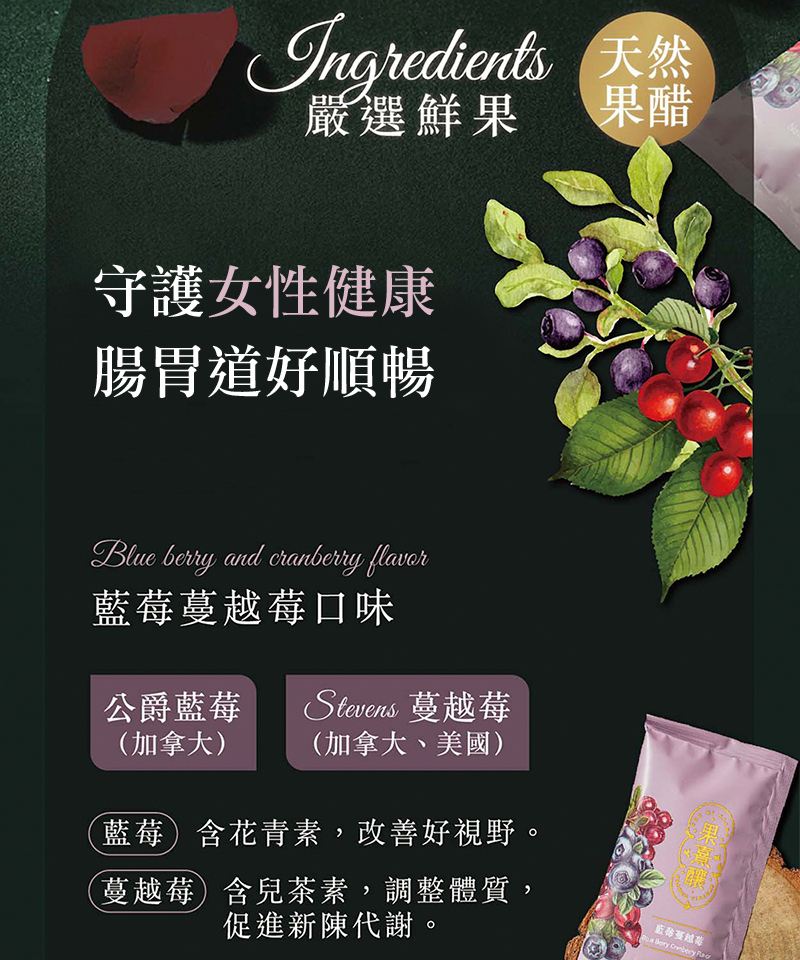 品名:【果熹釀】蔓越莓藍莓果醋 盒裝組|7包入|純素
