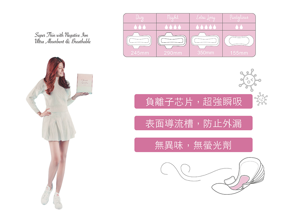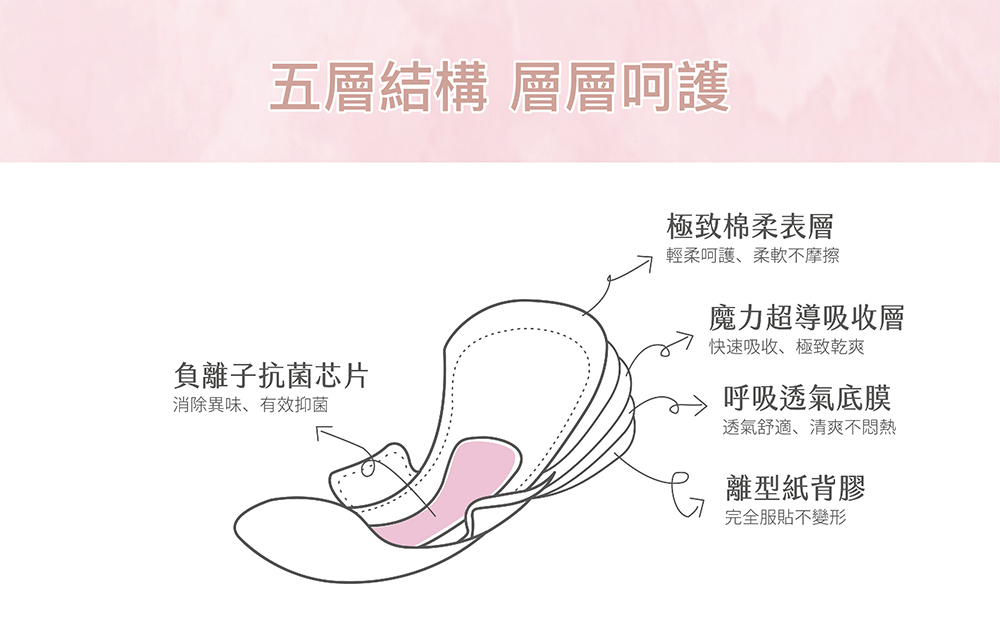 材質:柔棉表層、負離子芯片、無塵紙、高吸水分子 透氣底膜、離型紙