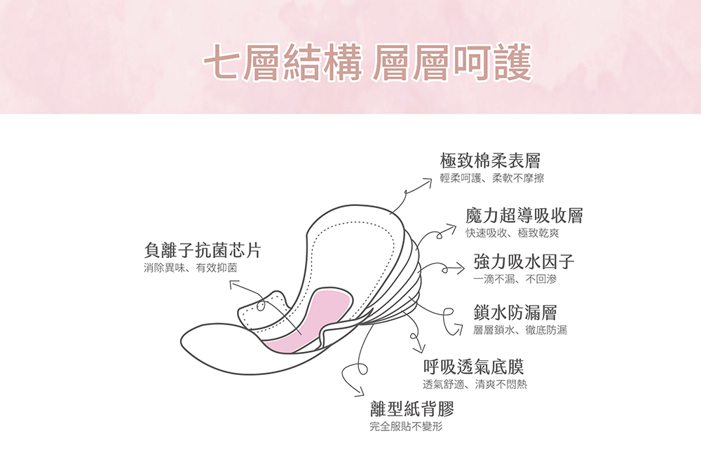 材質:柔棉表層、負離子芯片、無塵紙、高吸水分子 透氣底膜、離型紙