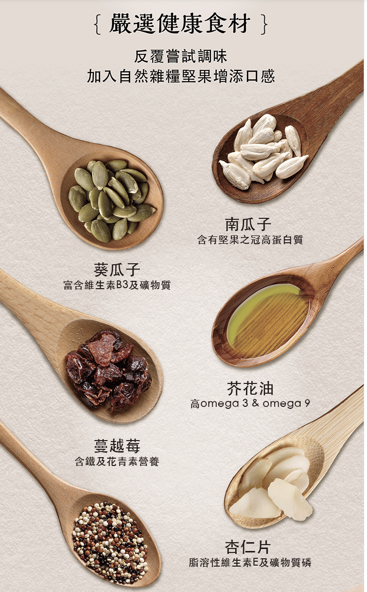 *原料單純天然,還增加不同的堅果增添口感~