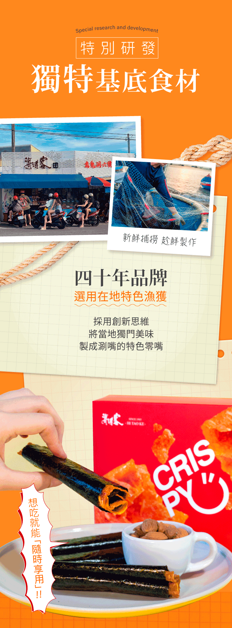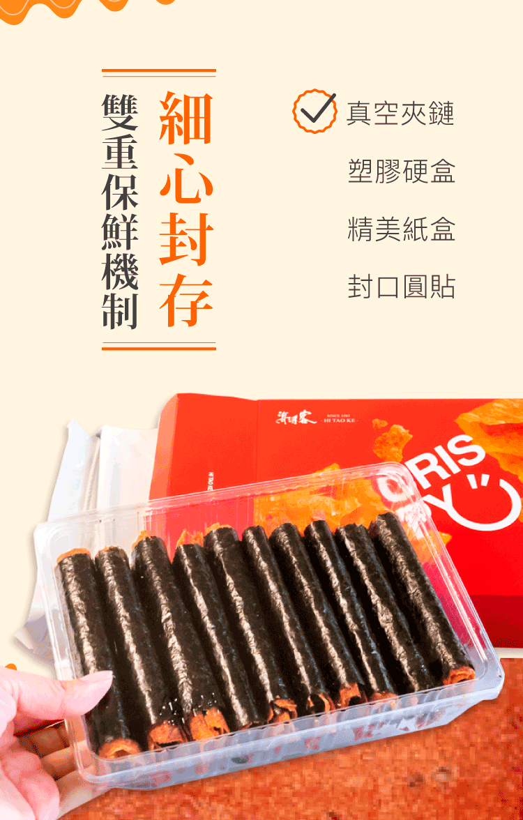 以純手工外層捲上海苔,喀、滋、脆的創新口感