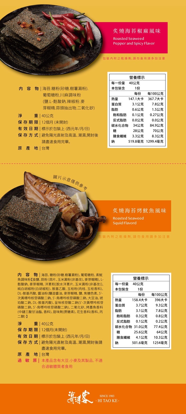 *烤魷魚風味:甜鹹滋味,配上獨特素魷魚的海味香氣