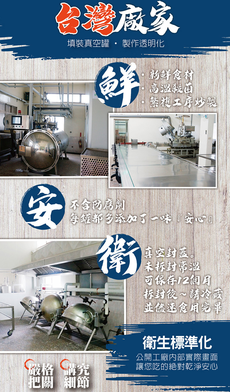 高溫後殺真空罐裝(不含防腐劑),未開封可常溫保存一年