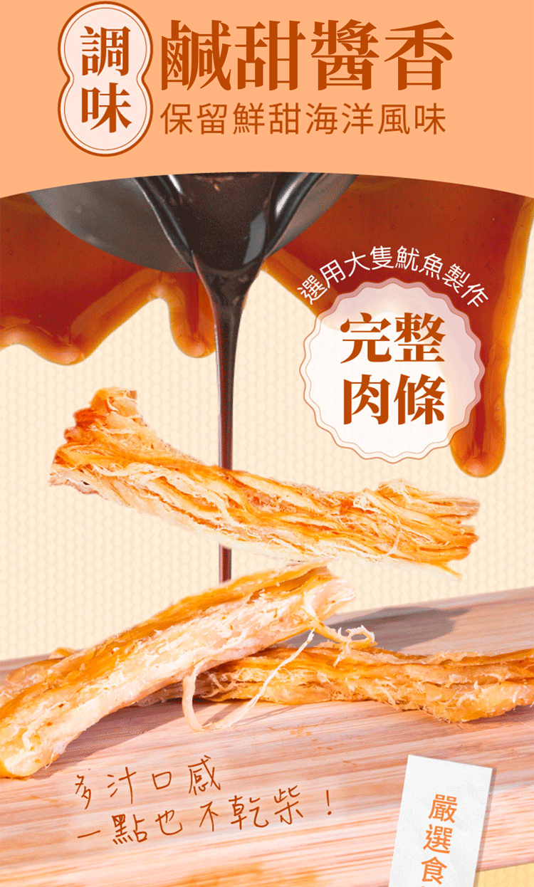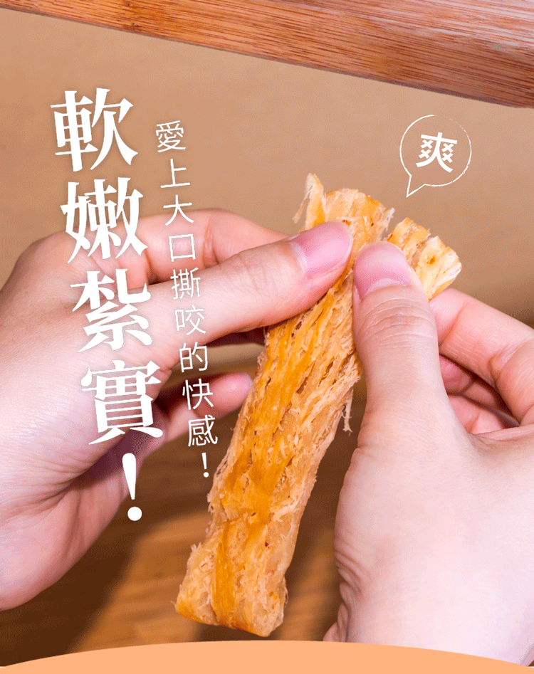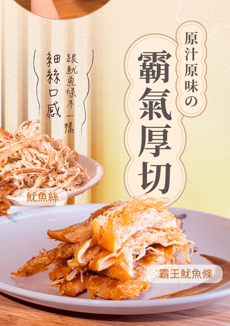 有別於一般魷魚絲的口感~滿足你大口撕咬的快感!