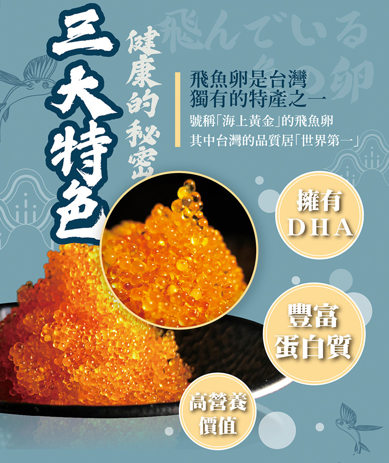 ➤ 純正飛魚卵。含有豐富蛋白質和DHA
