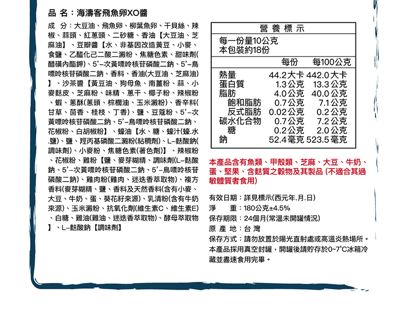 品名:【海濤客】頂級飛魚卵XO醬|微辣