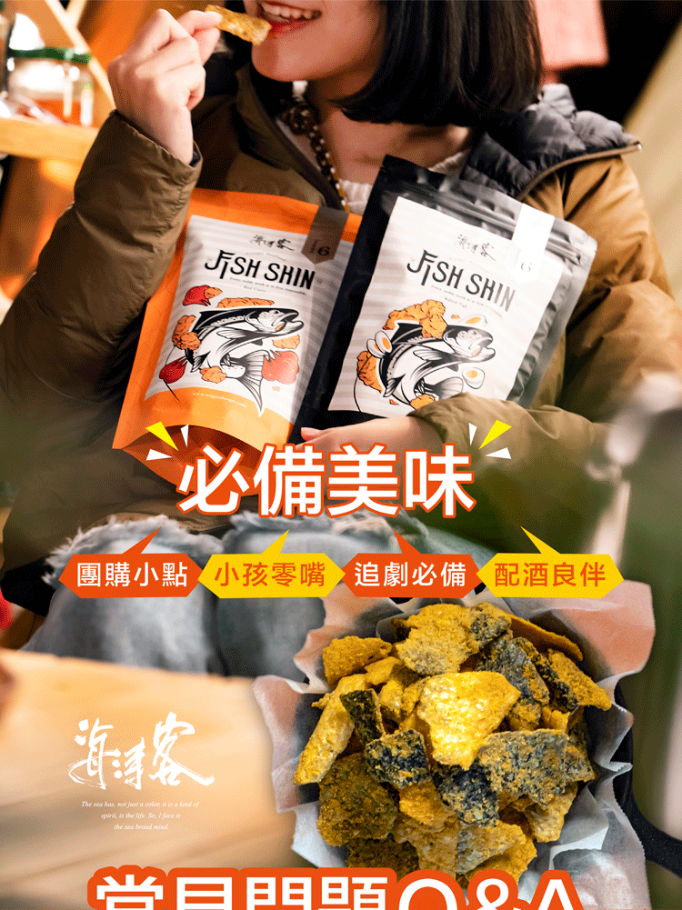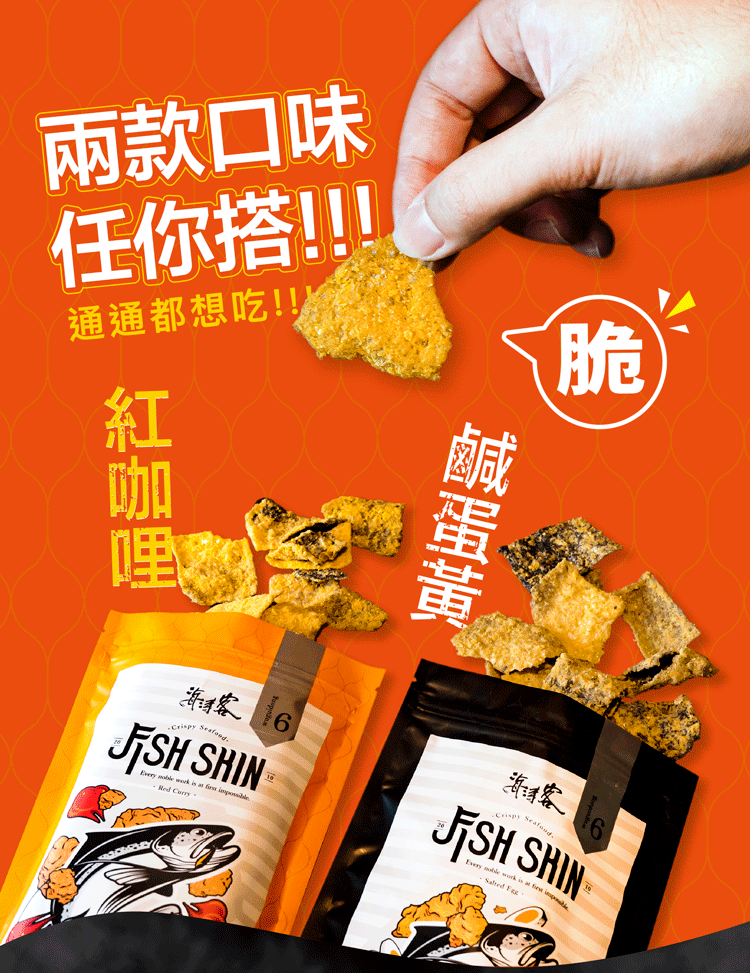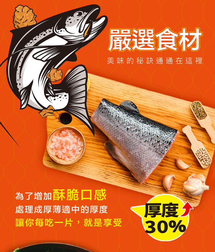 *新鮮鮭魚皮製成,口感酥脆不油膩