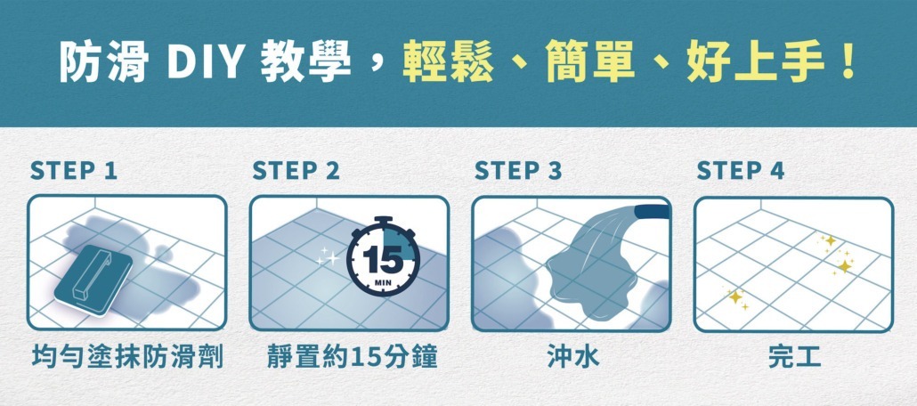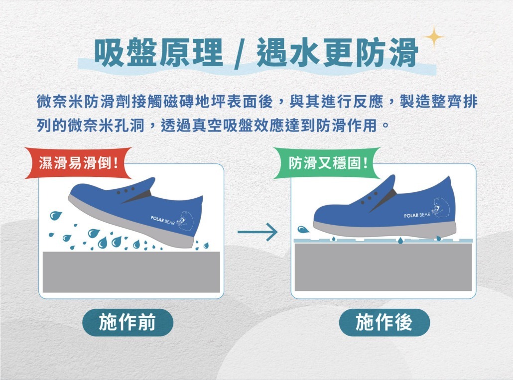 簡單易用,能在磁磚表面形成防滑層,幫助您打造更舒適、安心的居家環境!