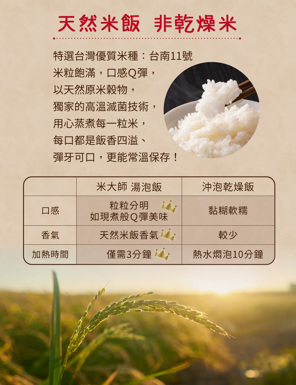 ★ 獨家高溫殺菌製程米飯,香Q彈牙